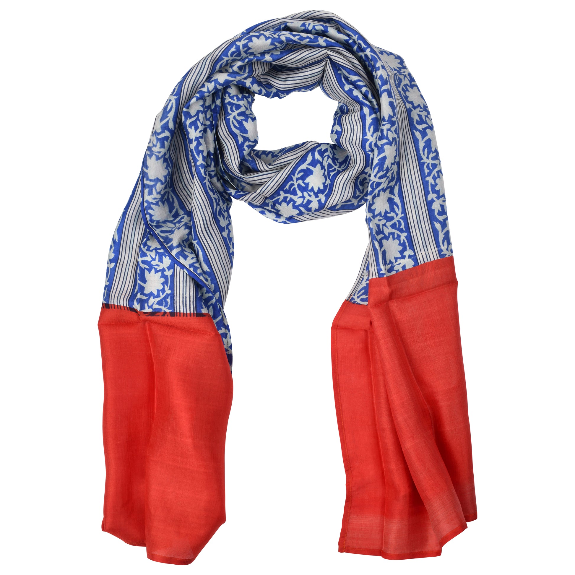Exquisite silk scarf, 20" x 80", designed and block-printed at a shelter in Kolkata. Block printing is a complex and highly respected artisan skill, which was traditionally done only by men in India. Mastering this skill and earning a good wage enable survivors to rise above the circumstances of their past, to save money, and to rejoin society.