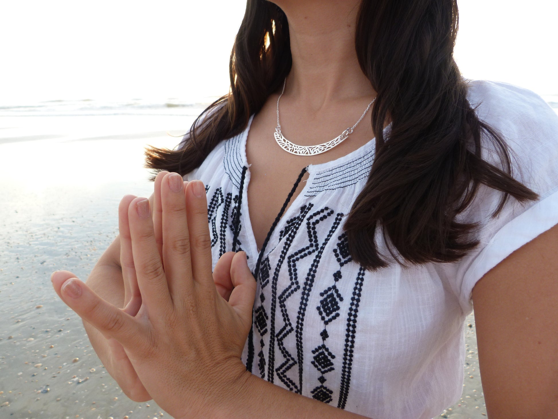 - Sterling Silver Crescent-shaped pendant, 4" long